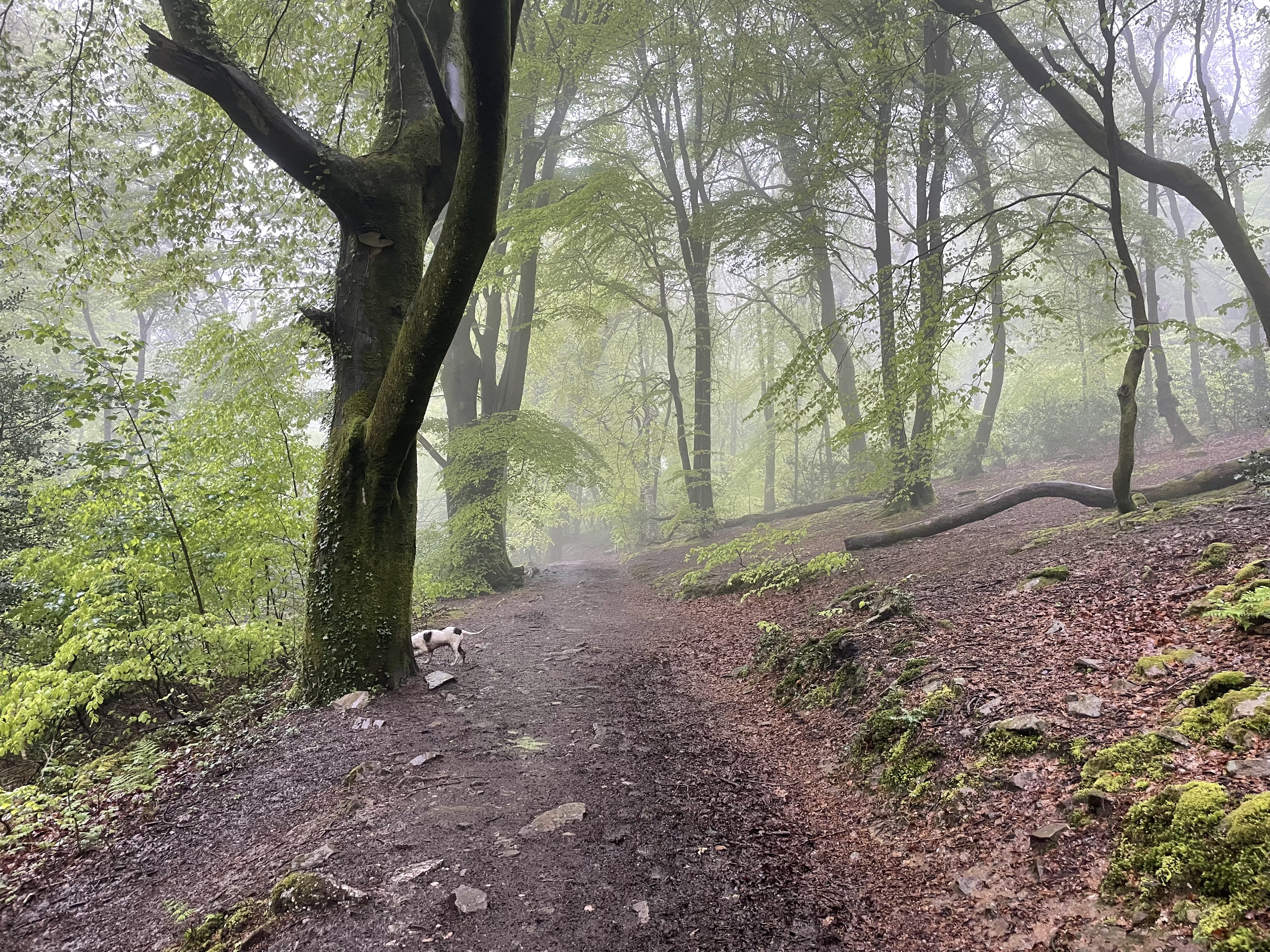 All year round baby! This is an excellent walk for particularly rainy or sunny days as it offers year-round streams to cool off the doggos and a lot of cover from the elements (but make no mistake you will still get soaking on a rainy day). Great bluebell photo opportunities in the spring too! Bear in mind, because of the tree-coverage it tends to get darker a little sooner than sunset. The woodland never gets very busy, but there are normally a couple of other walkers, most with dogs, around at any time of the day/week.